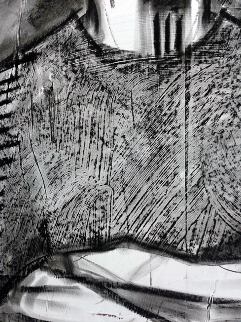 Charcoal over brushstrokes