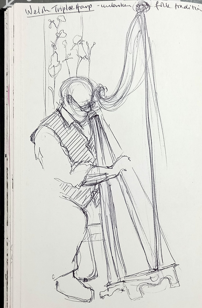 I wanted to do more sketches but I was so transported by the music that I only managed one. The performance was the closing event for the “Merched ar Llestri” exhibition by Lowri Davies and Elinor Gwynn. If you’re in Swansea, pop in to Mission, it’s a fascinating little place on Swansea’s historic dockside.