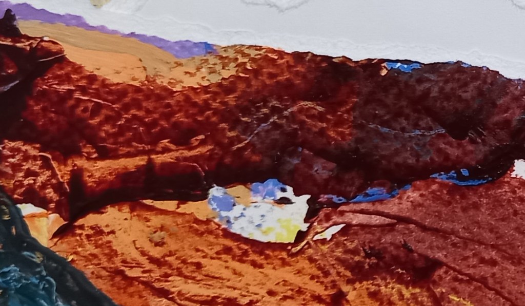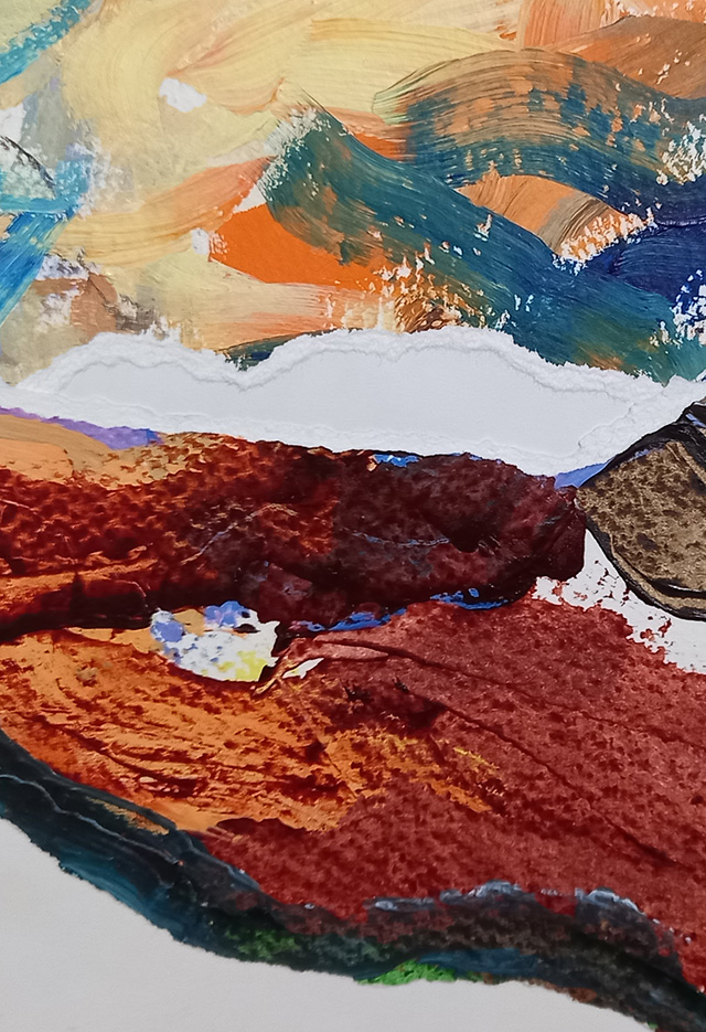 I played around with some paint (Liquitex Heavy Body) and offcuts of paper (Bockingford 280gsm) and a palette knife, scraping the paint over the surface to make the most of the texture. I ripped the offcuts up and arranged them onto backing paper, to see what happened, then took photos of the compositions that I liked. Total abstraction.