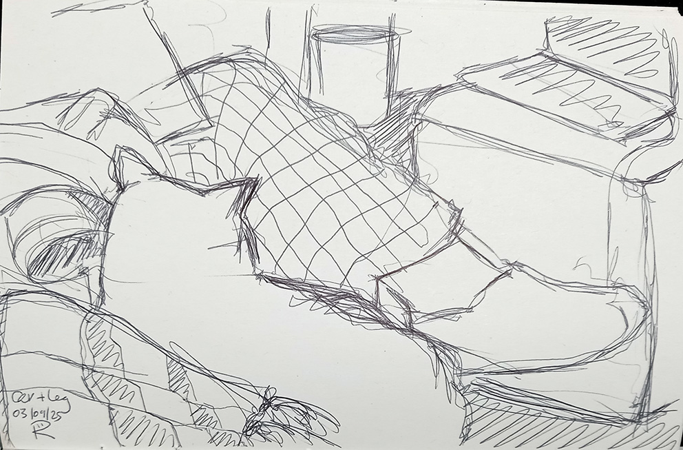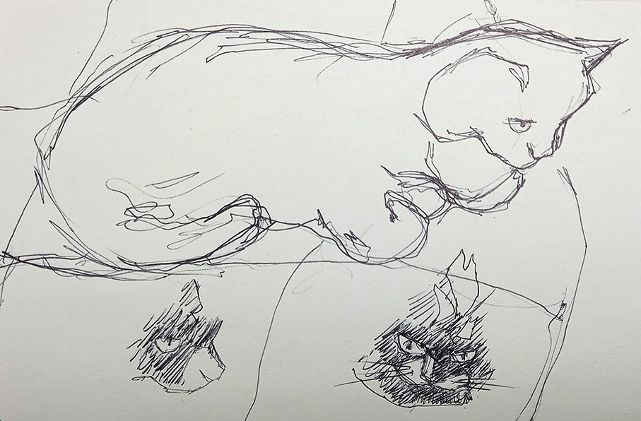 I’ve been feeling a bit under the weather for a few days so I had an easygoing Sunday, staying at home and not doing very much, like Sundays used to be when I was a kid. I had a scribble, looking at a corner of our living room from my comfy spot on the settee.