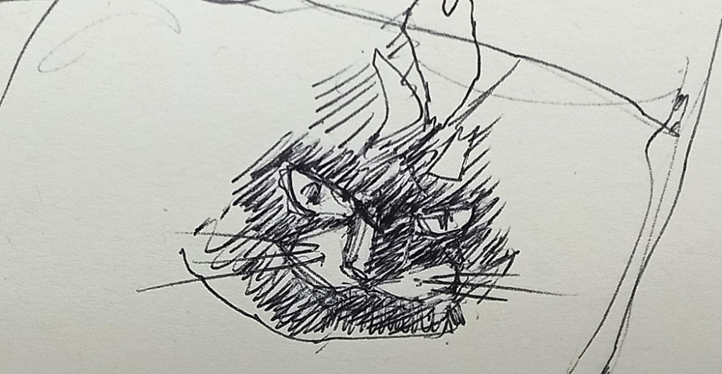 It’s archive time again, from March 2014. Here are 4 sketchbook scribbles and a sketch on newspaper that I did at a “live” drawing session.