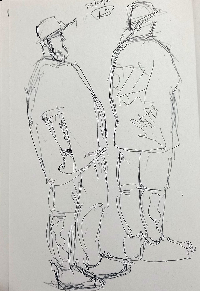 I saw another back at the Bunkhouse and a side-view too, so I had to have a scribble. Husb and I were there on Saturday night, enjoying some funky vibes.