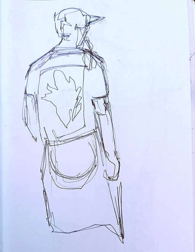 This guy at the recent gig at Elysium had a great stance, so I scribbled him. I was listening to the band “Goat Major” at the time and really getting into the “occult doom/stoner metal” groove as I scribbled away, it made my pen strokes much more intense, I think.