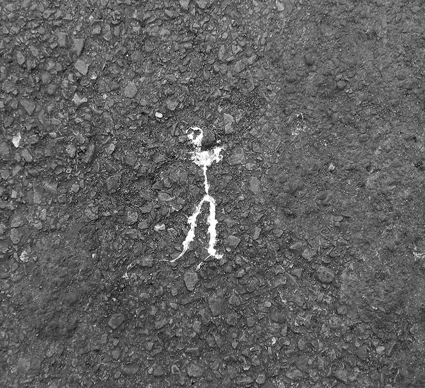 I was strolling along the street with my friend and fellow artist Chris Bird-Jones and she stopped me and pointed to this smear of seagull poop on the road (above). She thought it looked a bit like some of the figures I drew during my German residency last year (below). She could be right, y’know!