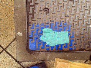Here we are, from left to right, Chris Harrendence, me, Melvyn Williams and Patricia McKenna-Jones. I really like working with other artists. It can be a very isolated profession so it’s nice to get out and collaborate. We tried different drawing materials but we pretty much ended up using graphite blocks which dissolved into a lovely fluid line on the soaking paper.