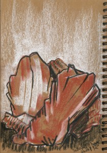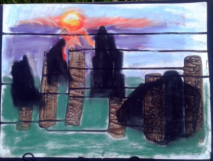 I am exhibiting a series of drawings made of ancestral Bronze Age and Neolithic monuments in the field – mostly muddy fields – drawn on my journey across South Wales over the past 18 months with prehistorian Dewi Bowen and filmmaker Melvyn Williams. This body of work has its roots in a life-changing journey I made to Pakistan some years ago, where I became fascinated by rock carvings over 10,000 years old.