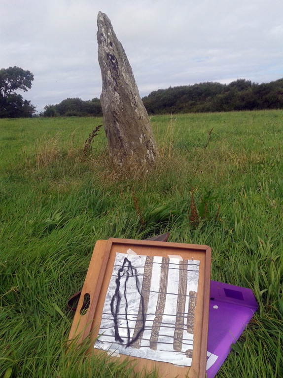 Back in February I started travelling across South Wales with Rhondda-born archaeologist Dewi Bowen and Swansea film maker Melvyn Williams, in all weathers with my portable drawing board, portfolio of Fabriano paper and a bag full of assorted artist’s materials. Dewi is researching his latest book on Neolithic monuments and Melvyn is making a documentary film of our literary and artistic adventures.