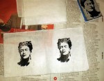 “Waste not, want not” as my Nana used to say, along with “Make do and mend”. She survived two world wars and the great depression of the 1920s and never threw anything away. I’ve been tearing some beautiful Japanese Shiohara paper for an edition of woodcuts and there are a load of small leftovers about 7 inches by 4. Cut in half they’ll be the ideal size to try out a little rubber stamp I made a few months ago with a laser cutter. I scanned a screen print I did of the artist Frida Kahlo and scaled it down then followed the complex instructions to operate some extreme machinery and out popped this stamp. I haven’t tried it out yet. I’ve been waiting for the right paper.