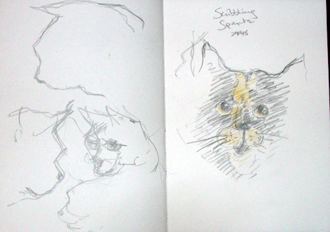 In between running around shrieking like, well, like a monkey, the she-ape has been daubing dirty sticks onto some nice clean paper and claiming that the resulting mess looks like me. Poor thing. She’s deluded. Idiot.