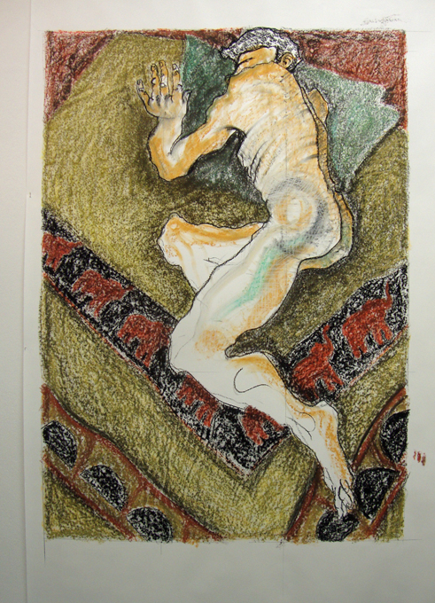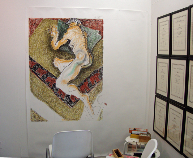 I finished my big drawing today at Creative Bubble artspace in the city centre. The art collective I’m in, 15 Hundred Lives, has been using the venue for two days a month for over a year now, this was our 14th event. The three of us, collagist Sylvie Evans, painter Graham Parker and me, use the space to work and develop together as a group and also to let the public come in and see what it is that artists do during the creative process.