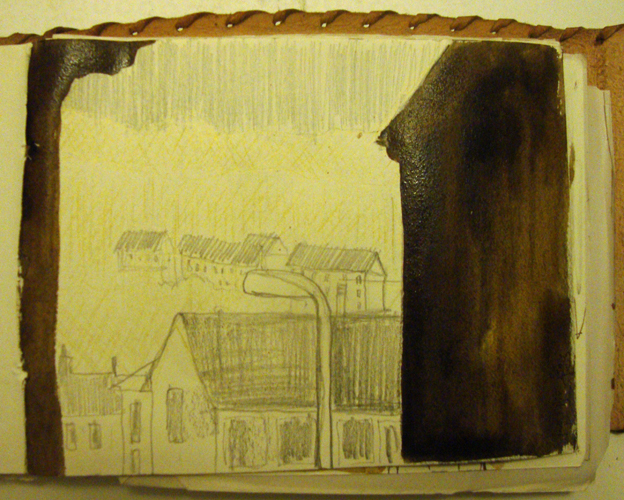 I nipped outside and stood in the drizzle, having a scribble, looking down the grey stone and slate street at the fiery bracken on the mountain opposite. And I had a bit of a scribble inside too.