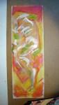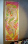 I carried on doing the paintingy drawingy thing today. I stapled a bit of gessoed canvas to the wall and started rubbing Daler Rowney System 3 acrylic pigments, thinned with screenprinting medium, onto it with my fingers wrapped in rags. The original is a life drawing I did earlier this year. It’s odd using paint. As a printmaker and scribbler I’m used to doing a process in one go. It’s weird for me to have to hang around to let paint dry before I carry on to add a bit more. I’m enjoying the technique, though, it’s free and expressionistic and quite fast.