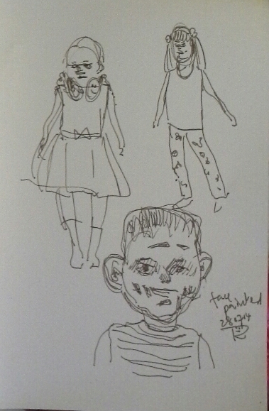I didn’t draw or blog yesterday! I am a bad person! Sometimes life gets in the way. Husb and I ended up shovelling lots of farmyard manure, transporting it to the allotment and piling it on some of our raised beds. Several hours of muck spreading in the heat and flies. Then we went foraging and collected plums and blackberries.