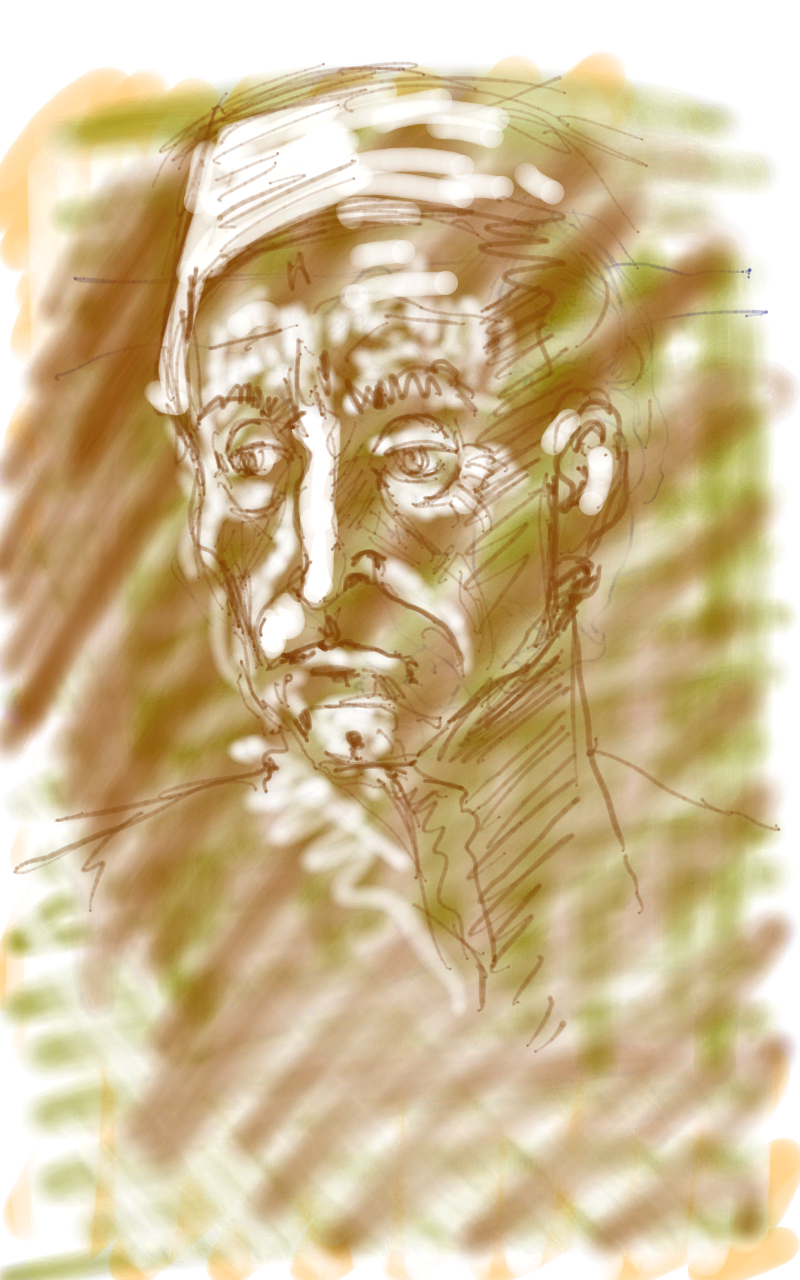 Just back from life drawing at Swansea Print Workshop. I made a spiced carrot cake for our tea break; I warmed it in the microwave for a few seconds before serving it. This is an older model who has some amazing tattoos; lizards chasing flies and spiders into carnivorous plants all over her body. She has a gorgeous pink, patterned kimono-style robe. This is a twenty-minute pose that I drew on my Samsung Galaxy tablet using the Markers free app. It’s dead handy for colour work because I’m a bit lazy and don’t really want to set up my watercolours or inks. It’s pretty packed out so there’s not much room anyway.