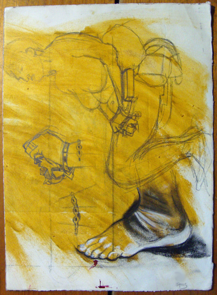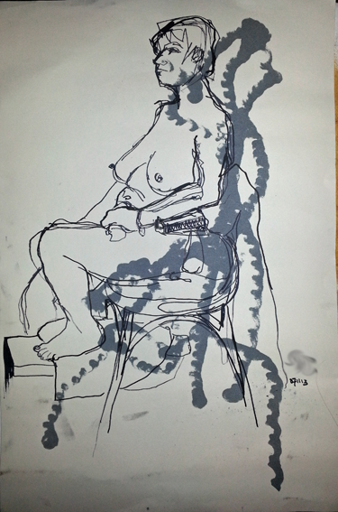 Husb and I just got back from the cinema. We saw Gravity in 3D. It’s easily one of the best films I’ve ever seen. If Sandra Bullock doesn’t get an Oscar, there’s no justice. I caught this couple next to us during the adverts. They don’t turn the lights right down during the trailers so there’s just enough to draw by. I’m still drawing into my clothbound A5 Laura Ashley sketchbook, it’s lasted really well and still plenty of pages to go. As usual, I’ve stuck in a ripped bit of brown parcel wrapping paper, using a Pritt stick and drawing with my Faber Castell Pitt pens, sizes F and M. It’s definitely put me off space tourism.