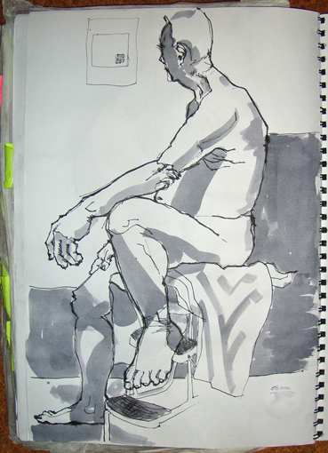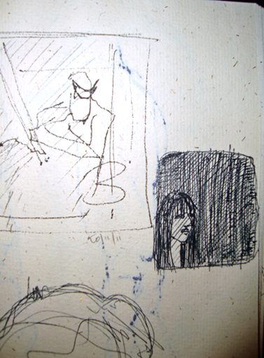 There’s a brothel at the end of our street and sometimes the ladies sit in the window, looking out. Sometimes I surreptitiously sketch them. If they see me, they draw back and close the blinds. Locally, the policy seems to be to let them be, although technically it’s illegal. The brothels masquerade as ‘gentlemen’s health spas’ and other euphemisms. I would like to see them completely legalised, but as that’s not likely to happen anytime soon, I think it’s a good idea to live and let live. It gives public health officials a chance to offer healthcare to the ladies, many of whom are drug addicts and as they’re visible, it’s easier to make sure that they’re not being kept prisoner. Also, it’s safer for the women to be together in a building, rather than on the street and better for other women who don’t have to put up with kerb crawlers. I was kerb crawled a couple of times and it was horrible…..and frightening.