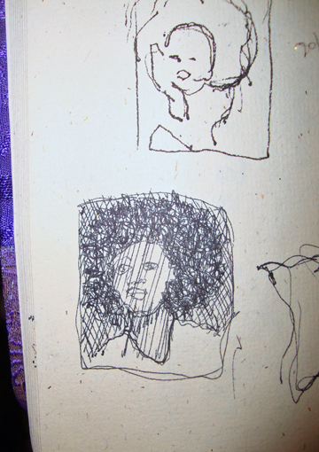 Eventually, these drawings will feed into a bigger, more structured piece in a body of work I’ve been planning for a long time, but I’m a long way from getting to grips with it. I’ve drawn them into my A5 recycled sari sketchbook with my Pilot v5 hitechpoint drawing pen.