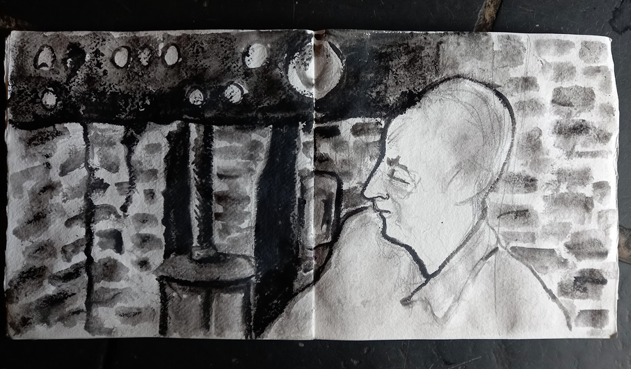 I spent a couple of days in Dresden as part of my residency with the Agor Abertawe group and went to a free outdoor concert in the Neumarkt. I did some sketches of a fascinating sculpture. I haven’t found out the name of the artist yet, I’ll track it down and add it to the post