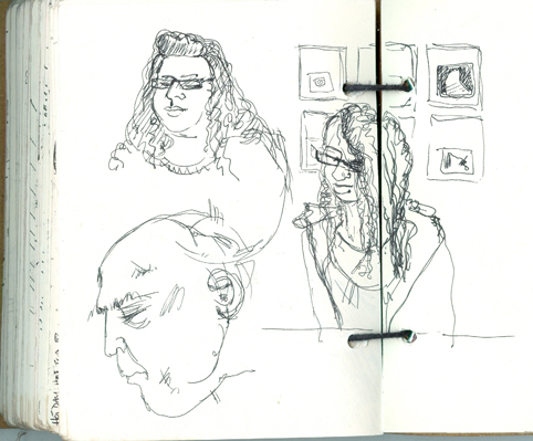 Just some faces scribbled when I’ve been out and about the place. The older man was scribbled this morning as I was having a nice cuppa with my friend in Waterstone’s bookshop cafe while we were waiting for Illtyd the Charcutier from Pontyates to deliver our sausages and faggots. mmmmmmmmm