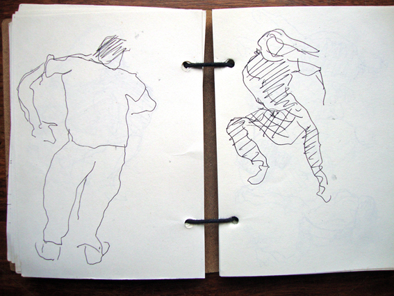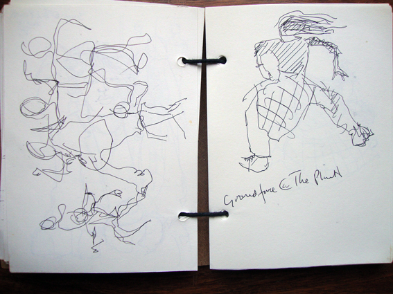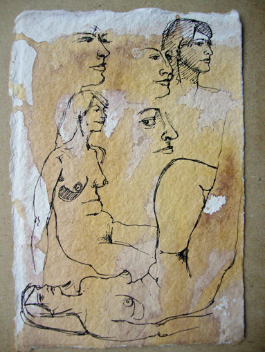 Here’s another drawing I did at last week’s life drawing group. In keeping with the Renaissance techniques I’m trying to incorporate into my work, I used the whole sheet of paper [it was only A6] and filled it with little quick sketches from the same pose.