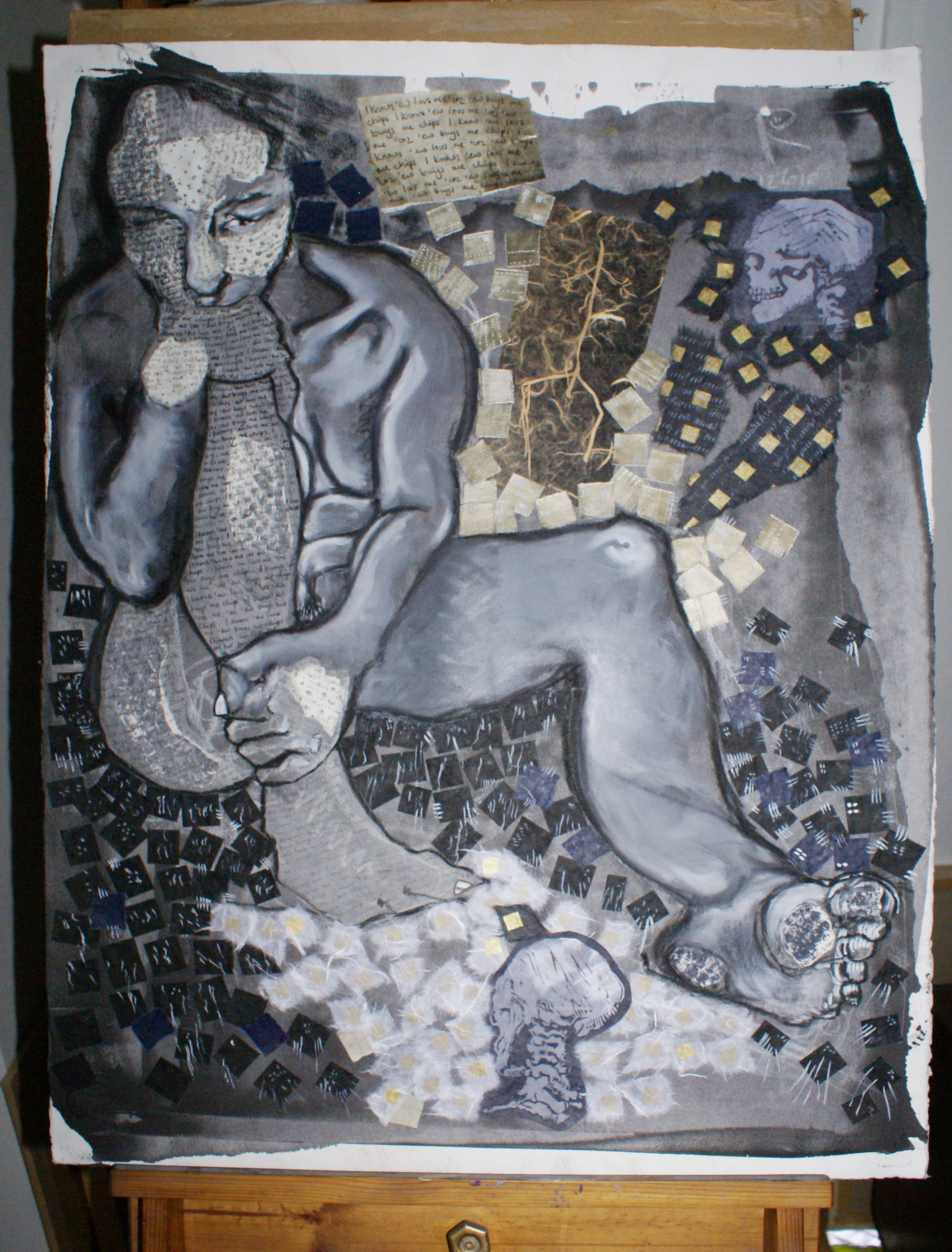 It was a very cold evening and despite wearing fingerless gloves I didn’t do much drawing, just a few scrappy sketches. However, there was enough to rework in the studio into a more coherent drawing which I’ll be turning into a photographic screen print which, along with loads of other drawings, will probably form part of mixed media pieces I’ve planned for the New Year. The drawing is very small, in Faber Castell Pitt drawing pens onto tracing parchment which is translucent enough to be used in the photographic screen process.