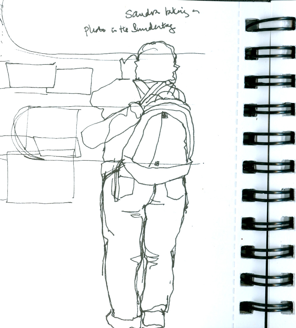 So where does Stonehenge come in? Outside the stadium was a plaza with a huge statue of a semi-abstract man in it and towering above it was an even more huge ‘Stonehenge’ thing made from concrete. We decided that if we got split up, we’d meet back at ‘Stonehenge’. About ten thousand other people decided the same! It’s an ink drawing in my sketchbook.