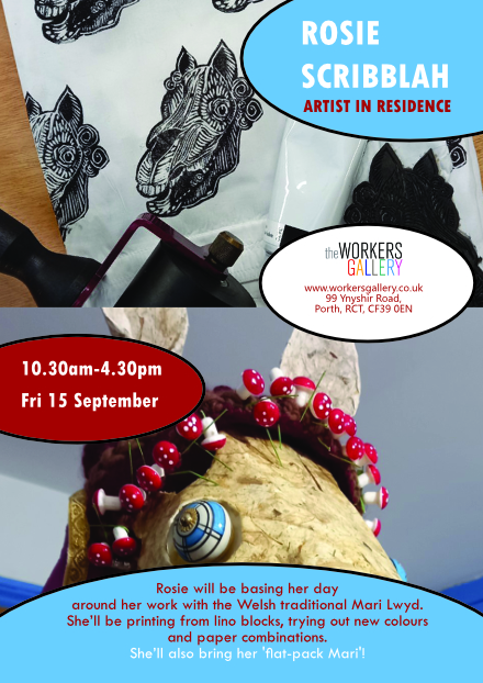 I’m doing a 1 day residency up The Workers Gallery in Ynyshir on September 15th – all about the Mari Lwyd. Come and visit me if you’re in the area 🙂