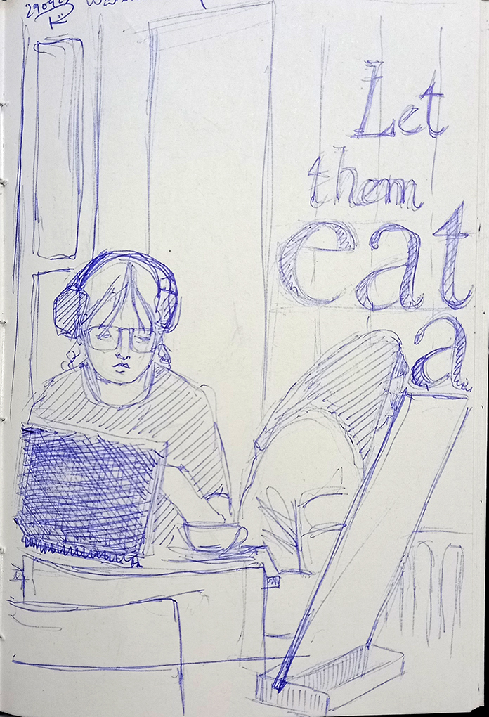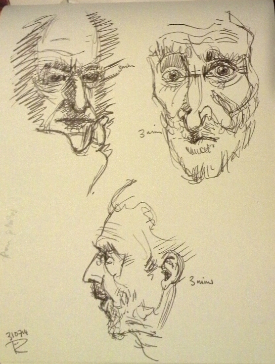 July 2014 wasn’t just a month of time spent on Swansea Beach. I also managed to scribble quite a few heads into my sketchbook. I never go back to these and use them in another way. I don’t know why not, other artists use their sketchbook drawings for new work. Maybe it’s something I should think about.