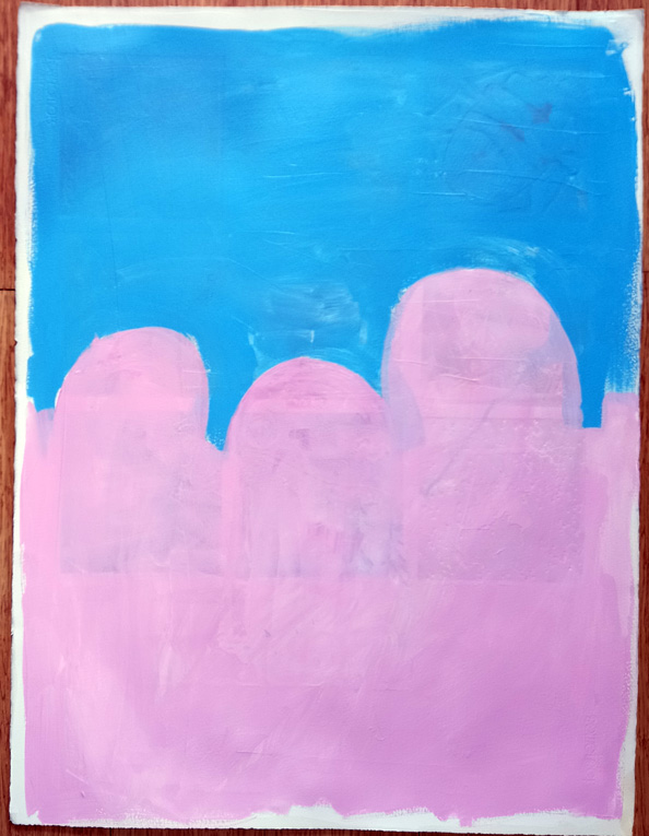 I’m using Somerset paper (300 gsm, 56 x 76 cms) prepared with a coat of acrylic gesso. The paint is Liquitex Heavy Body acrylic and the brushes are Daler Rowney Gold Taklon.