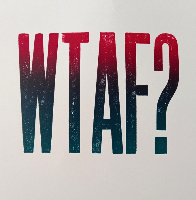 Sometimes things go wrong and I had an epic fail a few days ago when I was working on a new Letterpress piece at Swansea Print Workshop. I spent ages setting up the type, I really liked how it looked in its wooden state so I inked it up with a rainbow roll, using Cranfied Safe-Wash Relief ink in Process Yellow, Cyan and Magenta.