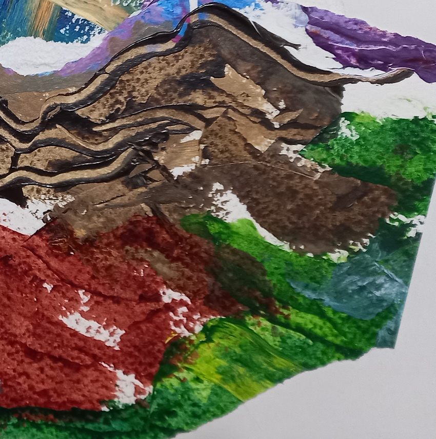 I used Liquitex Heavy Body acrylic and an offcut of Bockingford 280gsm paper, scraping with a palette knife.