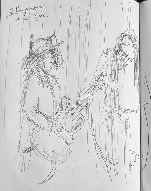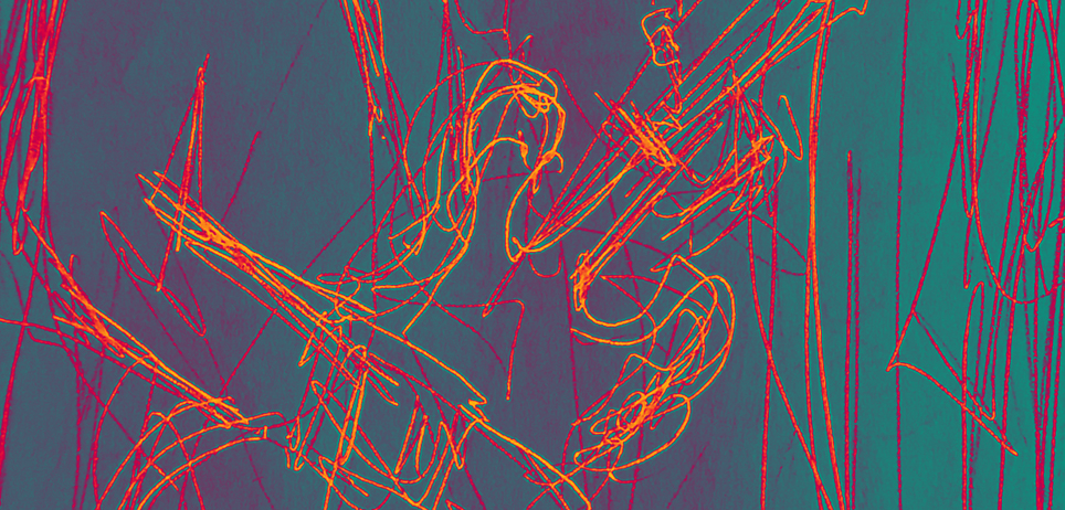 The drawing is based on one I did in my sketchbook – I’m always scribbling people – and the transfer print is from an original photograph I took of some derelict building in the Hafod area of the city.