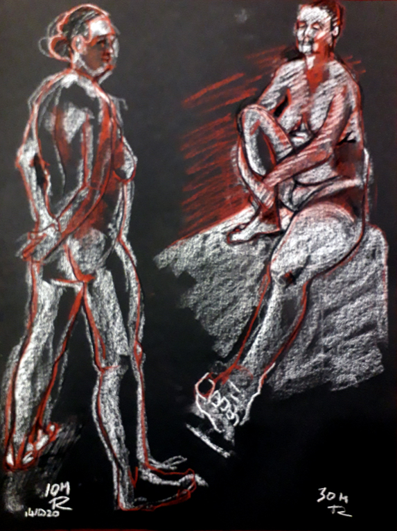 Just back from life drawing at Swansea Print Workshop this evening – we had a 2 week break during the “firebreak” lockdown in Wales. I didn’t take enough paper with me so I used this brown wrapping paper for the two 5 minute poses, with black and white conté crayons. Anyway, it’s getting late andContinue reading “Quick Poses”