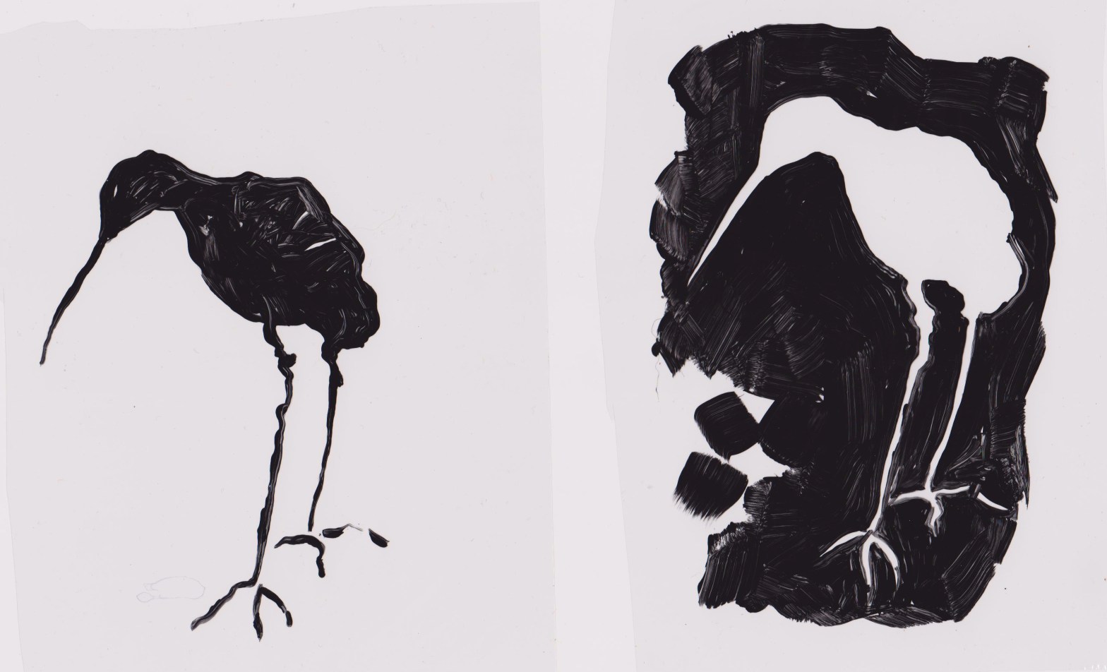 I started with an ink and wash sketch of a snipe (using my homemade walnut ink at Swansea Museum) drawn with brushes. Then, at Kelly Stewart’s screenprinting session at Swansea Print Workshop, I redrew it onto cellophane with brushes and black acrylic paint. These are the transparencies I used to create photoscreens. And thenContinue reading “Beginning To End”