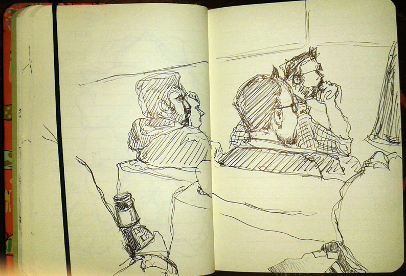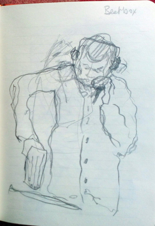 Another drawing from the Cardiff gig last week, the launch of Rufus Mufasa’s album, “Fur Coats From The Lion’s Den”. This is Steve Andrews, possibly the hairiest man I’ve ever seen and also a fantastic musician.