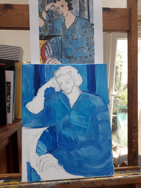 I did a session with Ed Sumner’s Cheese and Wine Painting Club last week, the first in a while. We’re faking The Blue Robe by Henri Matisse and I’m really enjoying it. I’ve always loved his work, I love the free way he puts the paint onto the canvas. It’s good for me because I’mContinue reading “Faking The Blue Robe”