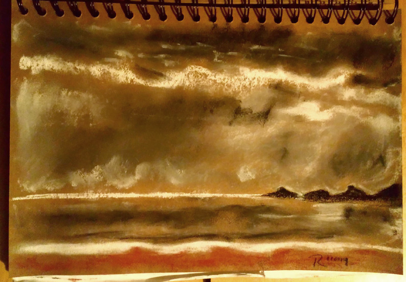 Out and about this morning, I had an ice cream in Joe’s ice cream parlour and then nipped down to the beach for a quick scribble in my A4 brown paper sketchbook, with conté crayons in black, white and sanguine. The light was quite dramatic, full of chiaroscuro. That’s Mumbles in the background. The nameContinue reading “Mamelles”