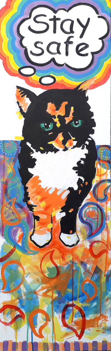 I carried on with my Pop-inspired painting of Sparta Puss today. I put the caption into her thought bubble – Stay safe – in a reasonable attempt at Comic Sans, although it could be a bit tidier. I love Comic Sans and I don’t care! I’m putting a rainbow border around the thought bubble, toContinue reading “Stay Safe In Comic Sans”