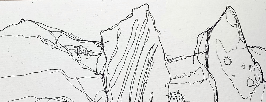Here’s the second part of my line drawing of the Giant’s Grave standing stones at Kirkstanton in Cumbria, done in the field en plein air into my Khadi landscape sketchbook. I like to sketch across the double page as it gives me a panoramic view, which is interesting to draw. When I’ve got a bit of time,Continue reading “Starting With Line: 2”
