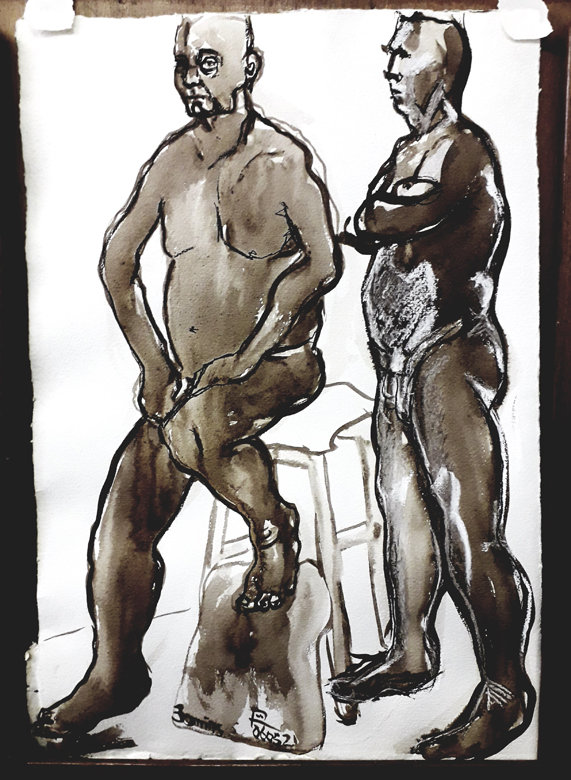 Life drawing sessions restarted at Swansea Print Workshop this week, it was great to be back. I’ve been working with this elder male model for years, I really appreciate his professionalism. I did two 30-minute poses on the same piece of vintage paper with walnut ink, and put in some highlights at the end withContinue reading “2 x 30 In Walnut Ink”