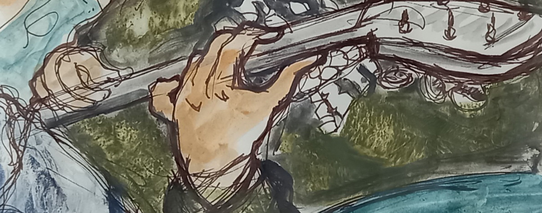 My teenage nephew is staying over, he’s a music student and I wanted to do some sketching with him. I’ve been doing a lot of scribbling at gigs recently but there’s not enough time to really focus on details like hands and the position and the foreshortening of the instruments. As he “noodled” with hisContinue reading “Noodling …..”