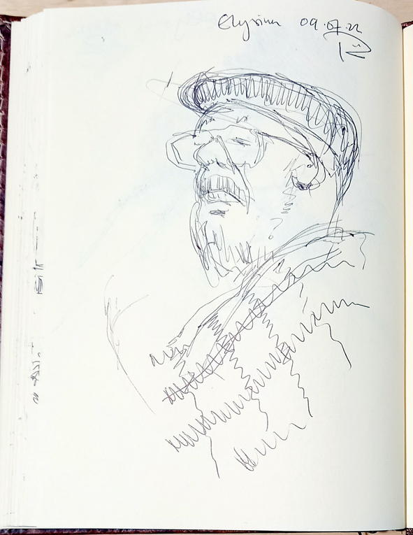 Husb and I went to the Elysium Bar this evening for some live music and of course, I had to have a quick scribble. There were plenty of interesting faces for me to sketch. Hats, glasses and beards are always a bit difficult and this chap had all three. Raising Funds. My family is raisingContinue reading “A Quickie In The Pub”