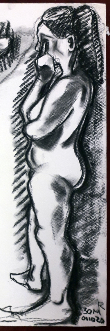 Here’s the complete set of life drawings I did last week at Swansea Print Workshop with one of our male models. The three below are fast poses, 2 x 5minutes and 1 x 10 minutes. Above are two x 30 minute poses and one of an hour. The sessions stopped at the beginning of lockdownContinue reading “Life Drawing And Local Lockdown”