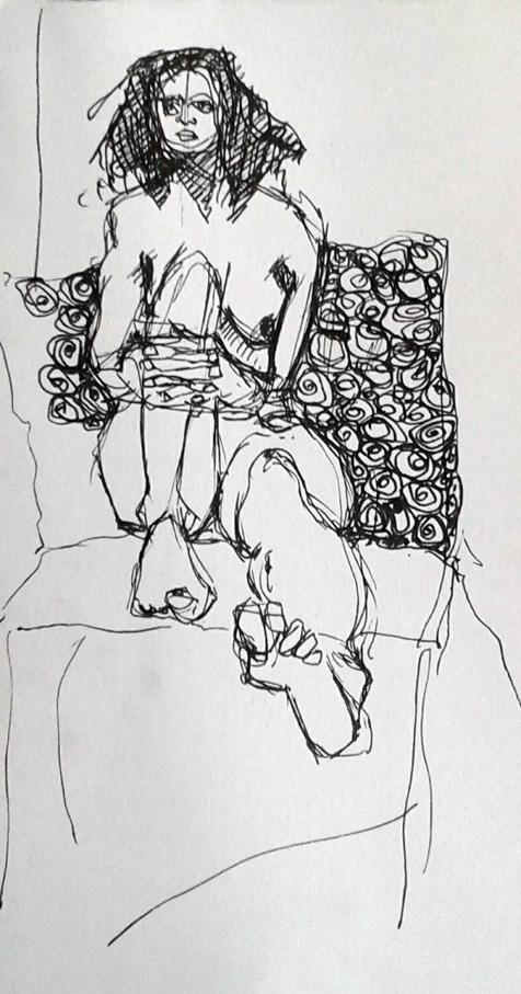 Here’s the second drawing I did at life drawing group recently, a quick one, just a few minutes. I drew it onto a scrap of Somerset paper with a Faber Castell Pitt drawing pen. It’s nice and scribbly and I think it might make a good drypoint. I might give it a go next week.Continue reading “Maybe A Drypoint?”