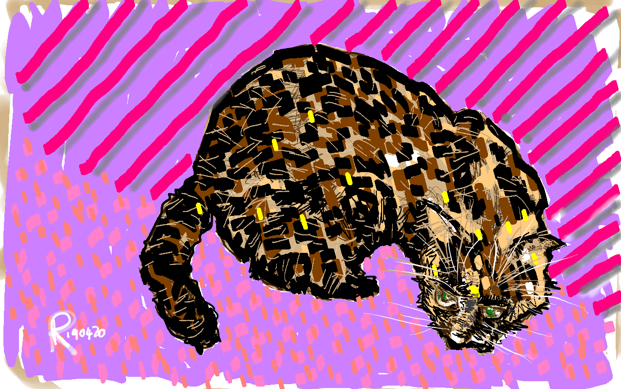Just doodling this evening with my Samsung Galaxy Note 8, a free app called “Markers” and Sparta Puss. She’s looking a bit scruffy because it’s Springtime and she’s moulting. She needs brushing but every time I get near her with a brush, she bites me. Hey ho.