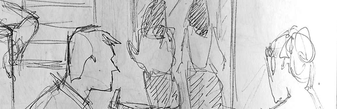 Here’s another of my sketchbook drawings from the Elysium Bar the other evening, two friends engrossed in talking. Lovely. Raising Funds. My family is raising money for Phil, a younger relative of mine, to have life-changing surgery in Spain. Phil is disabled by Ehlers-Danlos Syndrome (EDS) and the operation he needs isn’t currently available in the UK.Continue reading “Talking Heads”