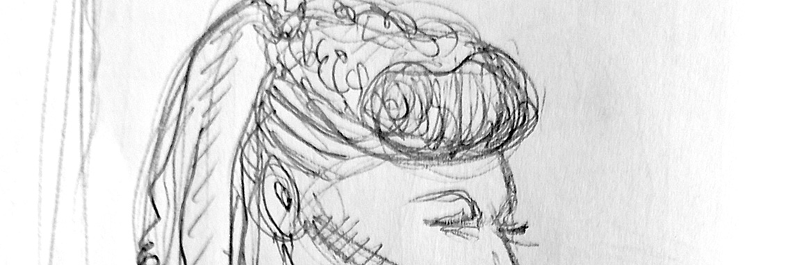 Here’s the last of the sketches I did in Elysium Bar the other evening. Gigs are good for scribbling because people are generally focused on the performers and keep reasonably still. Tom Emlyn and Sarah Passmore were playing – check them out, they’re fab. Raising Funds. My family is raising money for Phil, a youngerContinue reading “Scribbling In The Elysium Gallery Bar.”