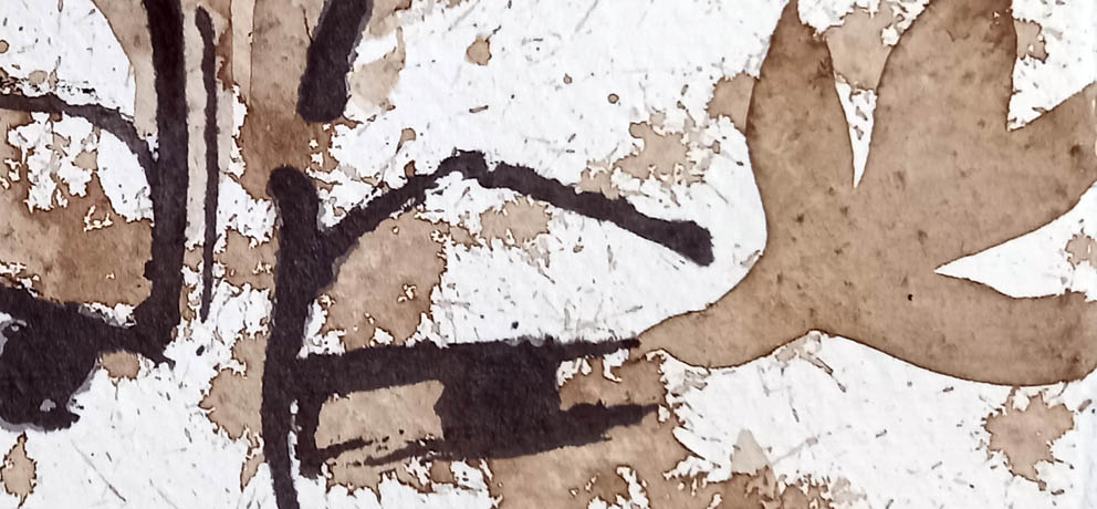 I grabbed the twigs I picked up from the path on my recent walk at Ilston and some square Khadi paper that I’d “attacked” with some of my home-made walnut ink. I also have a bottle of Indian ink that had dried out over the years but I added some water and left it toContinue reading “The Faces Emerge.”