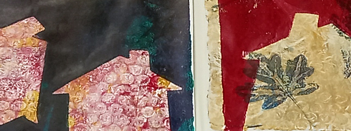 I did lots of Gelli Plate prints today, using a house motif. I cut house shapes in light card and used them as stencils. I used Liquitex Heavy Body acrylic paints. They’re for a specific project…more on that to come…