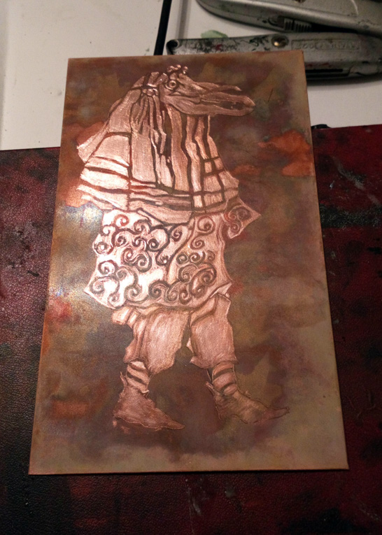 Carrying on with my archival Mari Lwyds, here’s a rare chance to see a copper etching plate, done with Andrew Baldwin‘s B.I.G. technique known as “faux mezzotint” back in 2018, in the time before The Plague.